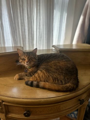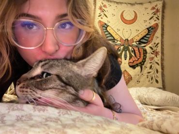 When I’m not in the studio, I enjoy going for walks, listening to true crime podcasts, and crocheting with my two cat babies.